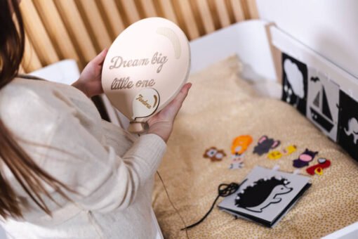 ➡️ Obsahuje: Černobílá tichá kniha, 2x náhodná sada dětských prstových loutek, velký ozdobný balón