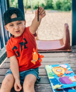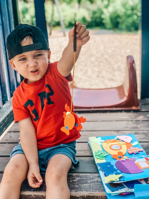 Den začíná hladovým pelikánem. Dítě hledá rybičku a vloží mu ji do zobáku. Dokáže si poradit se zipem? Aktivita rozvíjí koordinaci rukou a očí i přesnost pohybů.