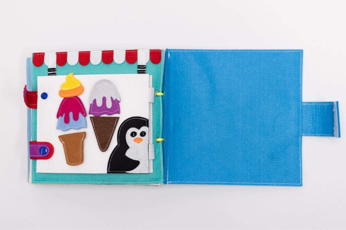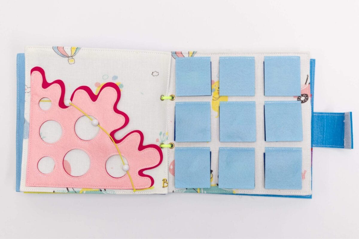 Tichá kniha je ručně vyrobená a pedagogicky navržená. Stránky jsou odnímatelné, můžete je libovolně přeskládat nebo sdílet mezi sourozenci. Výrobek také splňuje směrnici 2009/48/ES o bezpečnosti hraček.