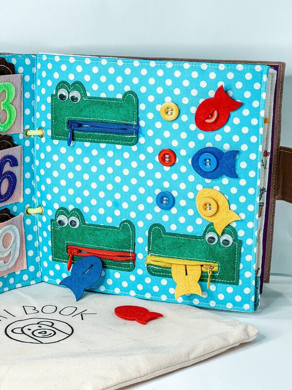 ✅ Jemná motorika: Děti budou rozvíjet dovednosti, jako je používání prstů a rukou, pohybem různých interaktivních prvků v tiché knize, jako jsou zipy, knoflíky, tkaničky atd.