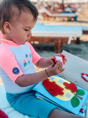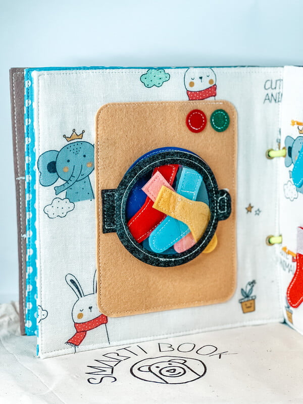 Proč vozit na výlet celou tašku hraček, když tichá kniha nabízí vše v jednom? Každá stránka představuje novou aktivitu, která dítě vzdělává i baví.