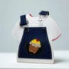 Materiál: bavlněné tkaniny, filc, provázek, plastové knoflíky, suchý zip, kovové knoflíky, plastové přezky