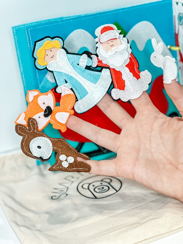 Sněhová země: Do sněhové země se na sáňkách vydali sněhulák, sněhová královna a malý králíček. Na cestě se k nim přidají ještě jeleník a přátelská liška. Každá postava je loutka na prst, rychle vytvoř svůj příběh a můžeš uspořádat skutečné divadelní představení.